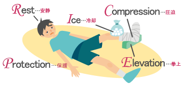 自身がスポーツをやっていたり、子どもがスポーツチームに入っていたりすると、打撲や捻挫、肉離れなどの応急処置としてRest(安静)、Ice(冷却)、Compression(圧迫)、Elevation(挙上)の頭文字をとった「RICE」処置を知っている、または行ったことがある、という人は多いかもしれません。